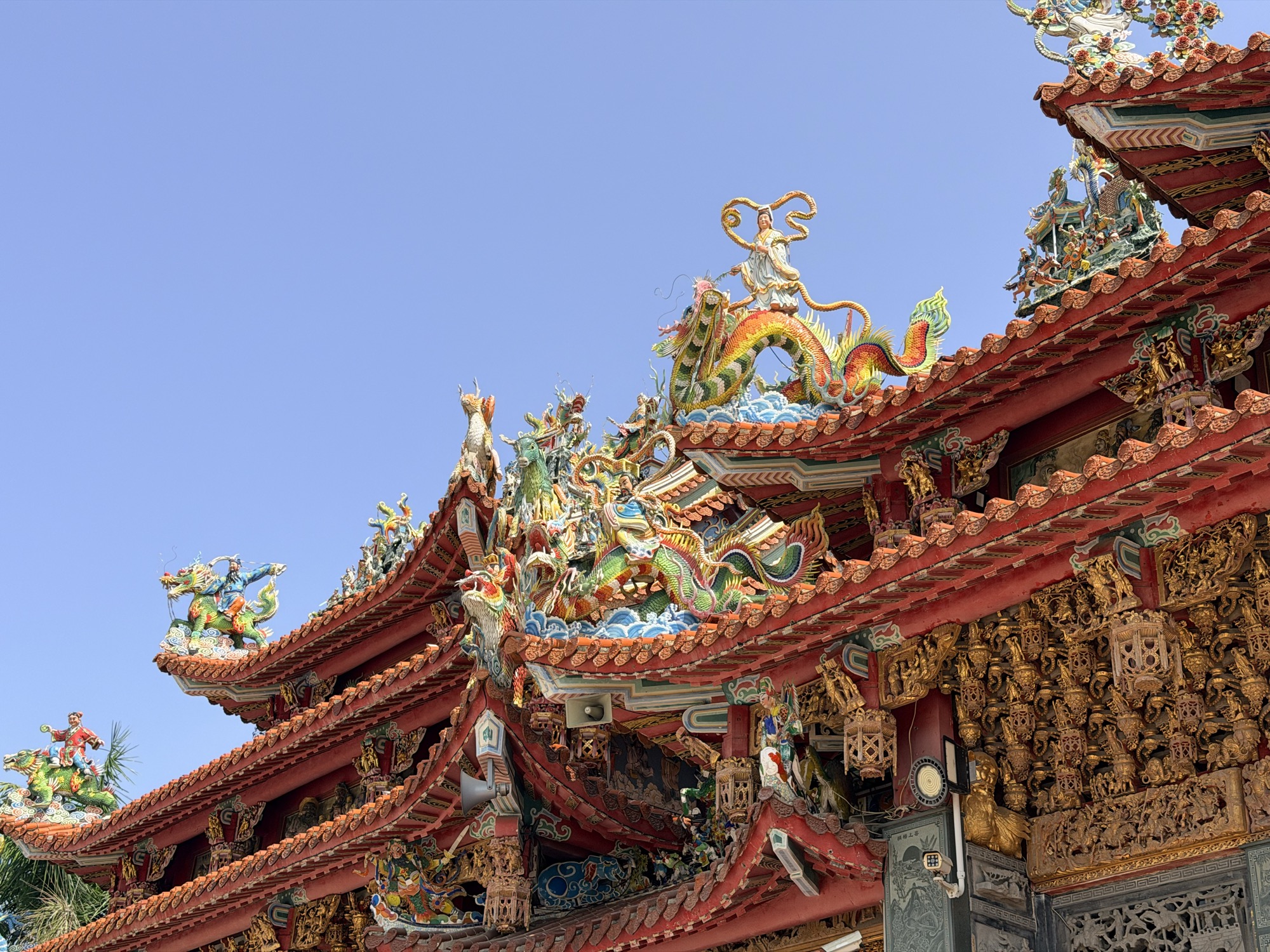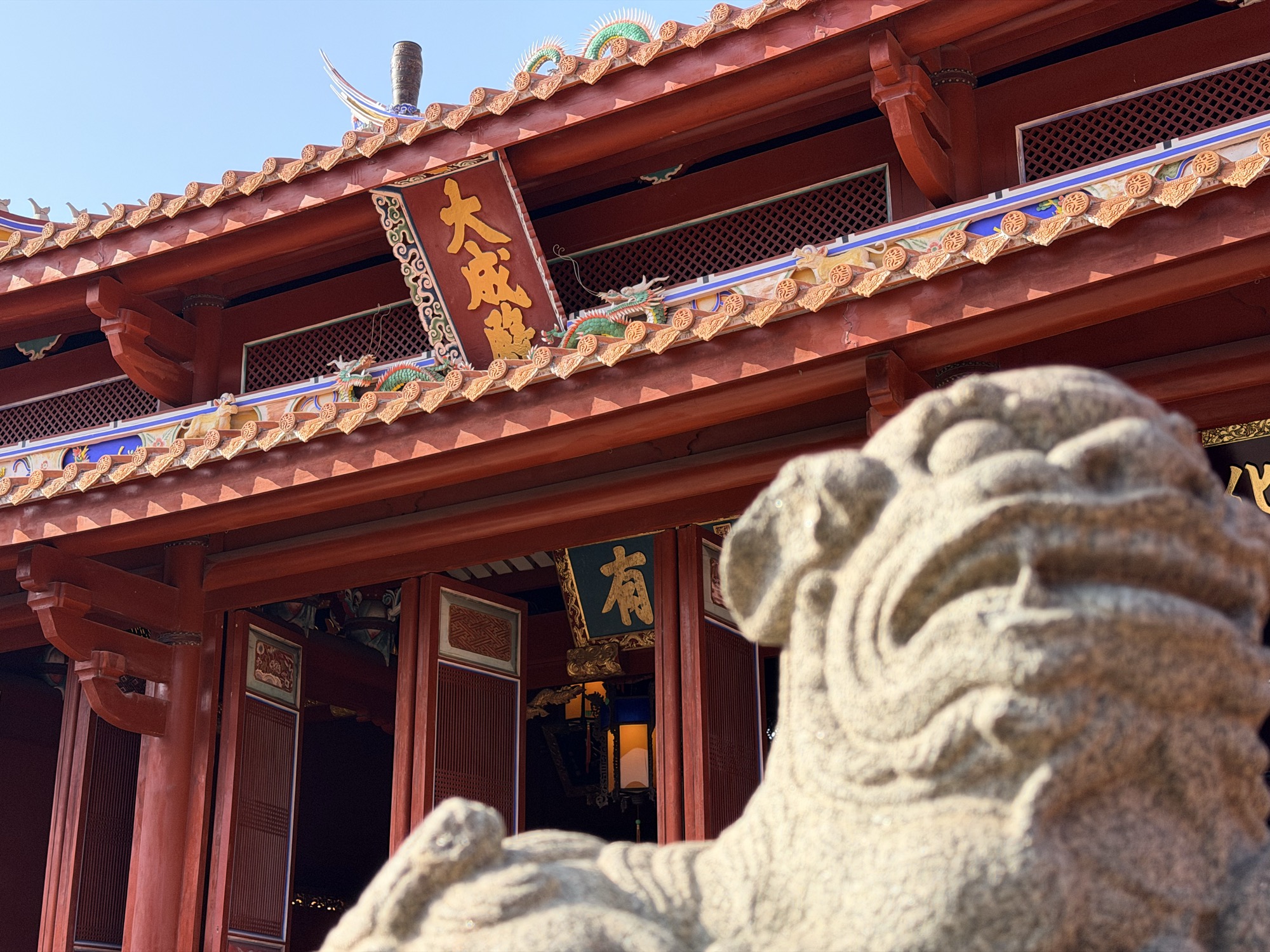 台南武庙最能看出中国民间信仰的真实面貌:佛道儒混在一起,观音、关公、月老、虎爷都有,没有条条框框,信什么拜什么。孔庙保存得极好,从康熙到光绪的八块御赐匾额在这里保存得最完整。大陆的孔庙在文革中多数被毁了,在台南看到这些真是感慨。清朝皇帝之后,蒋介石、蒋经国也赐了匾额,到了民主化时代,陈水扁、马英九、蔡英文、赖清德一个不落全跟上了。每一任领导人都要来孔庙挂块匾宣示正统,这传统倒是一脉相承。