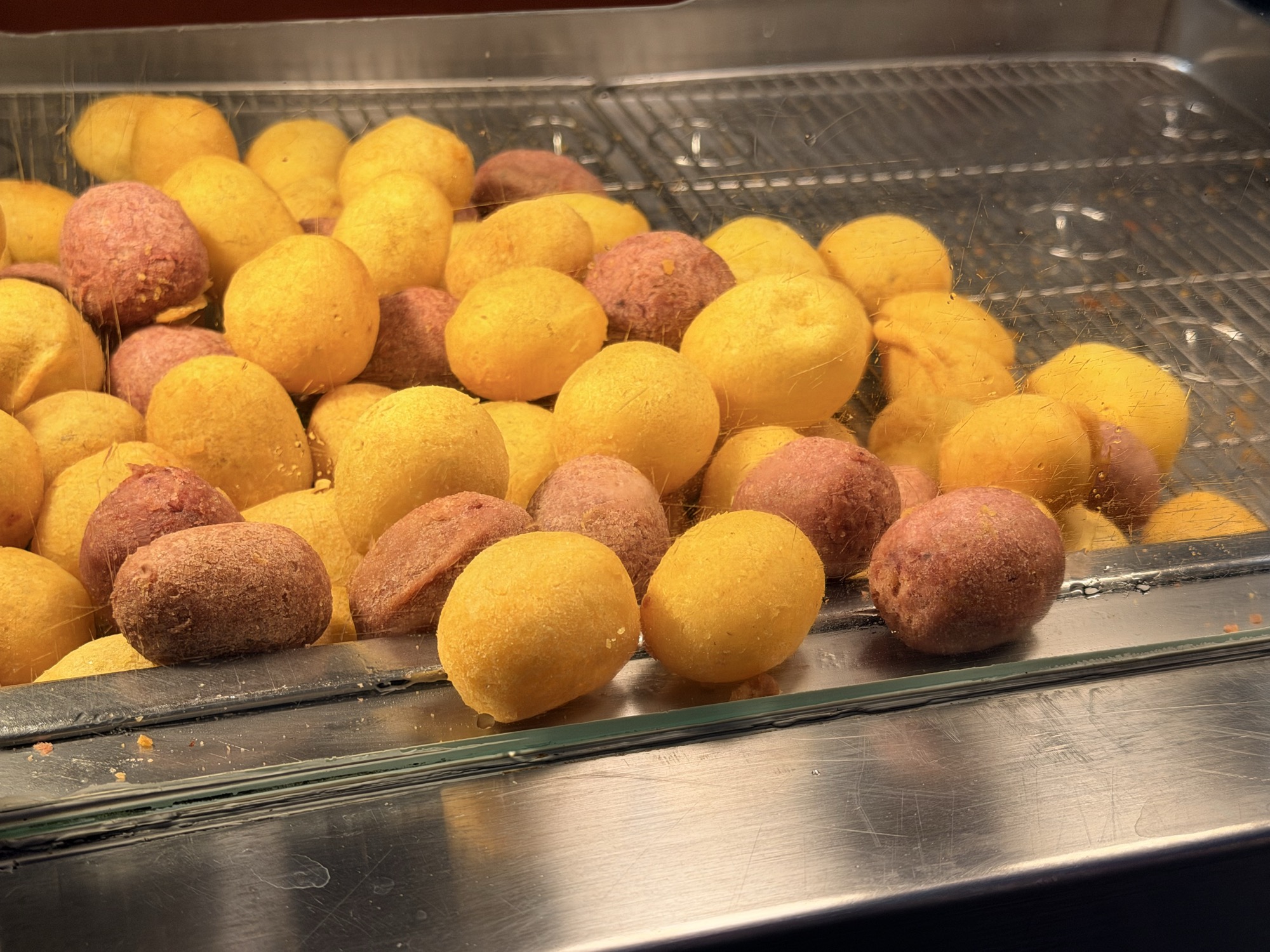 夜市是台湾饮食的主场。宁夏夜市的炸薯球好吃得离谱。南机场夜市的山内鸡腿饭让我明白简单的鸡肉也能这么好吃——凉着吃的鸡肉弹牙,当归鸡汤和米糕香到舌头快掉了。无名推车烧饼更是绝了,几乎一口大小的盐酥饼和红豆饼,我一个人吃了四个。